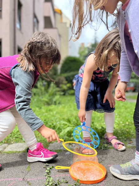 Wir machen Seifenblasen in unserem Hinterhof!